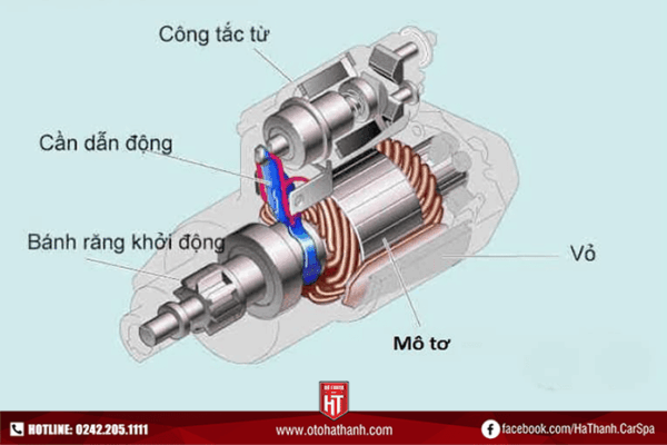 Củ đề xe ô tô có cấu tạo gồm 5 bộ phận: